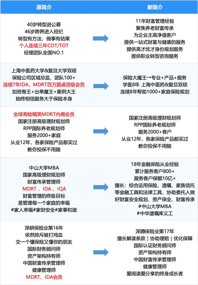 如果获得MDRT等认证荣誉,大多数保险达人们都会放到自己的自媒体简介或个人介绍中。